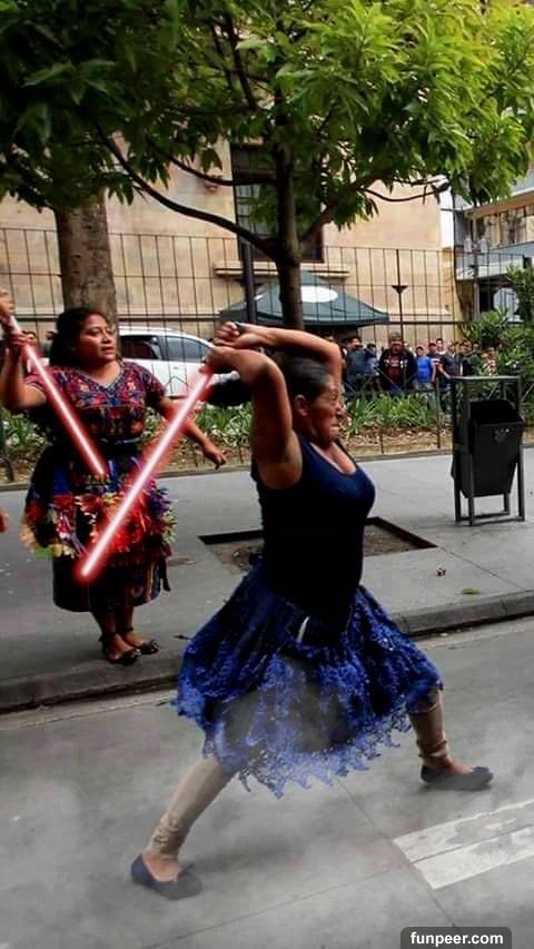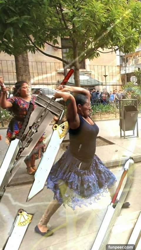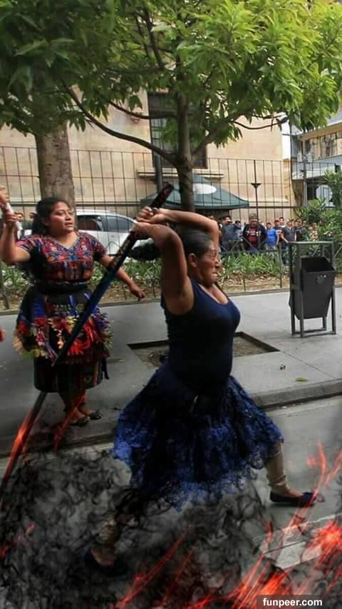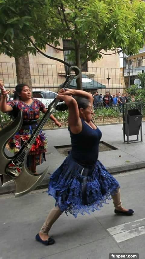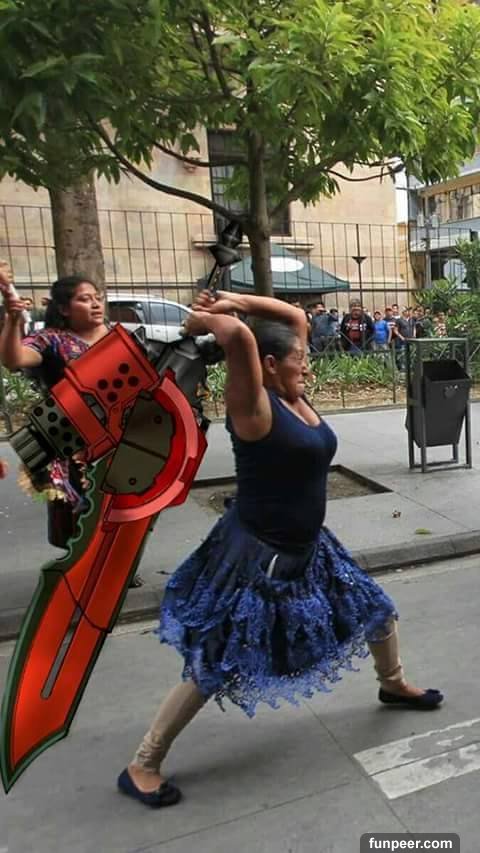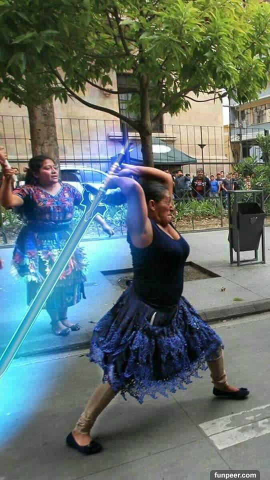 最近西班牙發生了一場抗議性別歧視徵求女權權益的街頭抗爭,不惜在街頭與警方直接衝突。然而鏡頭捕捉到這名阿嬤,看見阿嬤穩重又充滿力量的弓箭步姿態,被網友直呼最佳典範!然而這張看似充滿戲劇性的照片,當然也難逃網友PS惡搞的神題材!許多網友認為大媽手上武器看似太弱,因此幫忙換上各式各樣的神兵器!這些PS太強大讓這位阿嬤也瞬間意外爆紅。