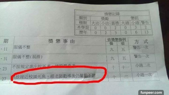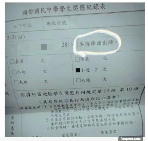 相信大家在學生的時期,肯定多少都有不小心被記警告或記過的經驗吧!而現代的學生被記過的理由也越來越特別了!前陣子就有名網友在