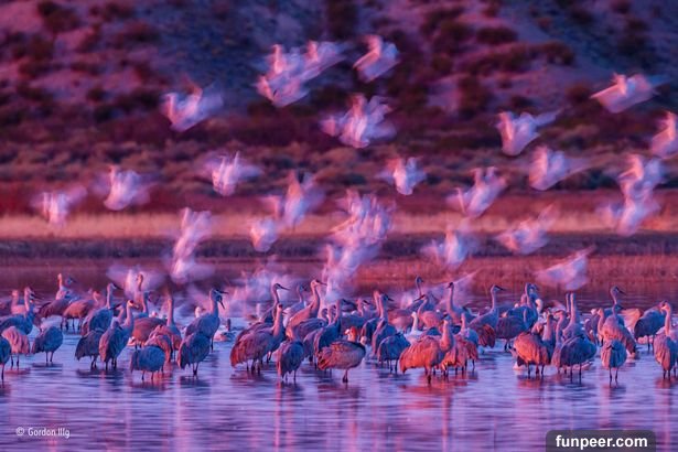 ▼10. Gordon Illg,美國籍,《鬼魅雪雁》。這些雪雁們固定在一個時段會在這邊聚集,倒映詮釋出粉色的晨曦就像是鬼魅般地令人著迷。
