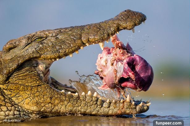 ▼9. Bence Máté,匈牙利籍,《幸運的一餐》。這頭長達四公尺的尼羅河鱷魚,正在準備享受進食那種冷酷殺戮的神情令人振奮。