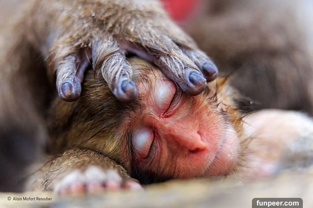 ▼6. Alain Mafart Renodier,法國籍,《母愛之手》。攝影師到了日本地獄谷雪猴公園,鏡頭捕捉到熟睡中的獼猴寶寶,看見母親溫疃的手讓人覺得充滿溫馨與感動。