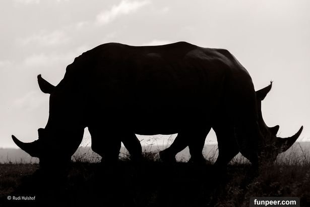 ▼5. Rudi Hulshof,南非籍,《雙頭犀牛》。攝影師本來只想捕捉犀牛那動人的身影,卻意外驚見兩隻犀牛剛好互相重疊,讓整個效果來說更加有不一樣的感覺。