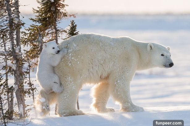 ▼11. Daisy Gilardini,瑞士籍,《順風車》。位於加拿大的馬尼托巴省,小北極熊不想走路,正好看見北極熊突然甩掉身上厚重的積雪,北極熊寶寶則順勢跳上母親背後想搭個便車。