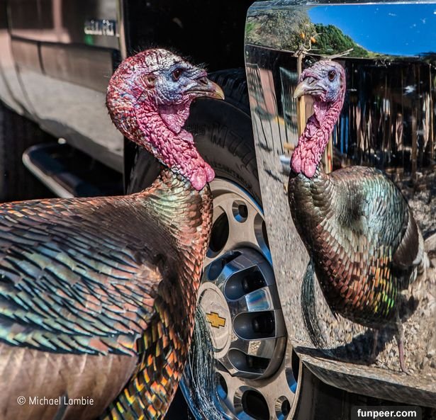 ▼3. Michael Lambie,加拿大籍,《對峙》。在繁殖過程公火雞們總是會努力爭取機會吸引異性注目,但此時這隻火雞卻疑惑著對面到底是哪一位神秘訪客。