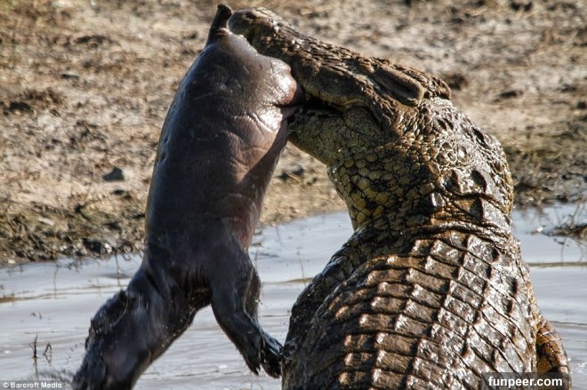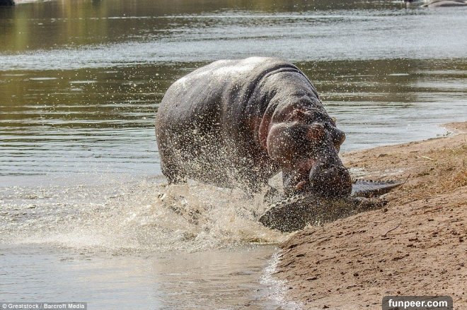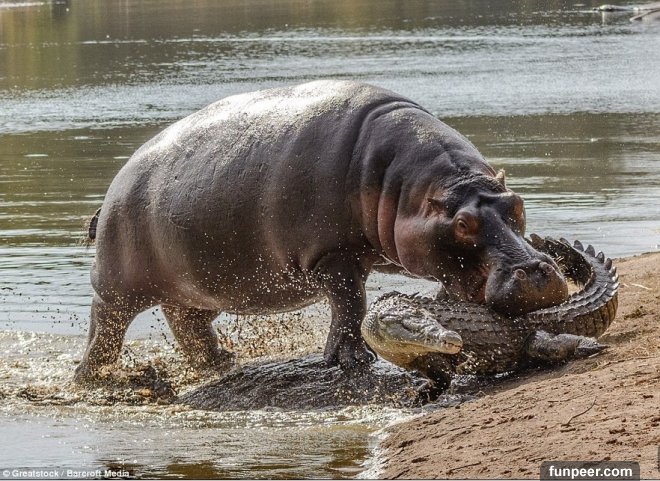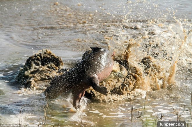 河馬媽媽一個不注意小孩就被鱷魚咬死,直接爆氣上演「復仇之戰」!