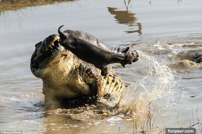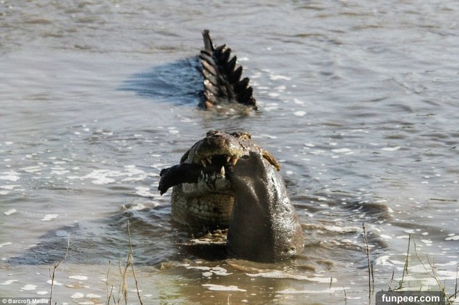 河馬看似一種很溫馴的動物,但當他們為同伴挺身而出時,兇猛程度可是無可比擬的。國外攝影師最近就拍到了這麼一幕,鱷魚趁河馬媽媽不注意時攻擊小河馬,媽媽見狀後徹底爆氣變身超級賽亞人,與鱷魚展開世紀對決!▼鱷魚趁小河馬落單,竟一口猛咬其下半身,往空中一甩。▼過程中小河馬不斷掙扎,然而對鱷魚的猛烈攻勢束手無策。▼經過一陣狂甩,小河馬失去了掙扎能力。▼只能任由鱷魚宰割…▼最後還是成了鱷魚的食物。▼河馬媽媽一回來,就看到這一幕。▼一氣之下立刻衝進河中攻擊鱷魚。▼鱷魚驚覺敵不過河馬媽媽,企圖逃跑。▼然而河馬媽媽抱著喪子之痛,使出全力猛咬,直到鱷魚沒了呼吸。▼鱷魚斷氣後,河馬媽媽回到小河馬遺體邊,模樣非常傷心欲絕。雖然最後故事的結局還是悲劇,但這完全就是自然界中弱肉強食的寫照!趕快分享出去吧!