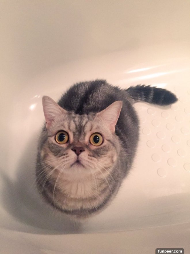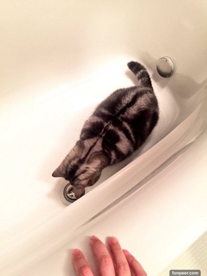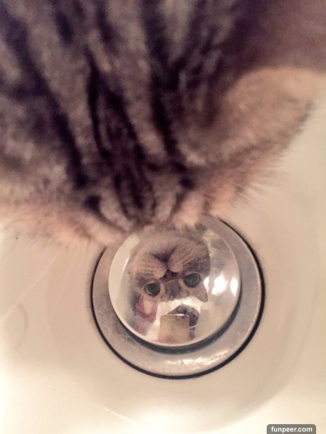 twitter原來貓咪一直在浴缸裡盯著排水孔看!第一次從排水孔中近距離的看到自己的樣貌,這隻貓咪看起來也相當吃驚。