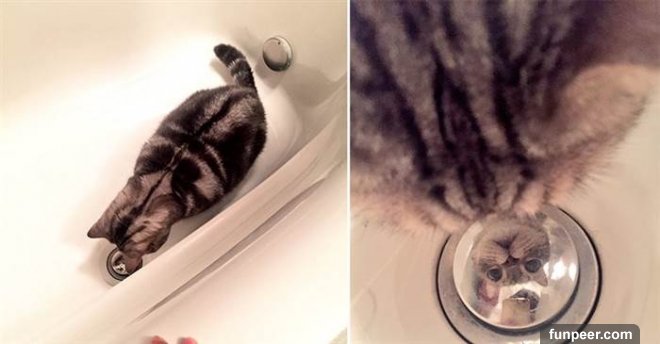 貓咪一直待在浴缸盯著排水孔不肯離開,最後還抬頭一臉「原來我是隻貓」的表情已經笑翻所有網友了!