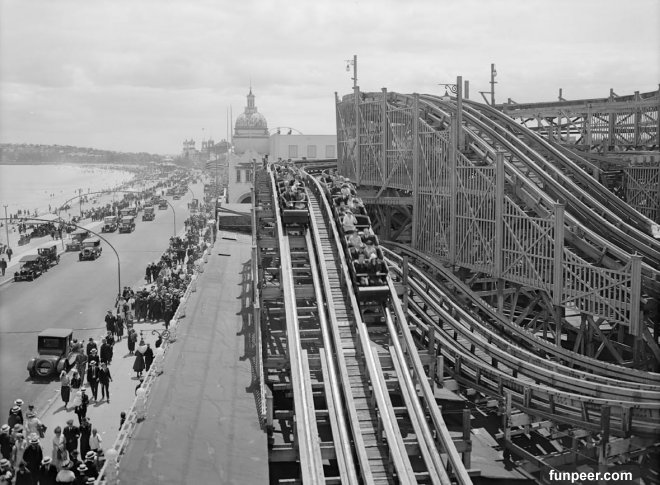 波士頓二十世紀早期木製過山車,德比賽車在它傳奇的歷史中有兩件造成死亡的事件. 德比賽車以兩列列車圍繞著8字形的軌道飛馳,這驚心動魄的設計而聞名. 1911年,製造德比賽車的公司CEO在給與安全講座的時候死亡. 他在向其他乘客講解的時候站起身子,不小心跌了下來而死. 六年後,有一個男人為了拿掉下來的帽子而被甩出車外. 他跌在軌道上,被拖了35英呎,身體裡幾乎每一根骨頭都斷裂直至他死亡.
