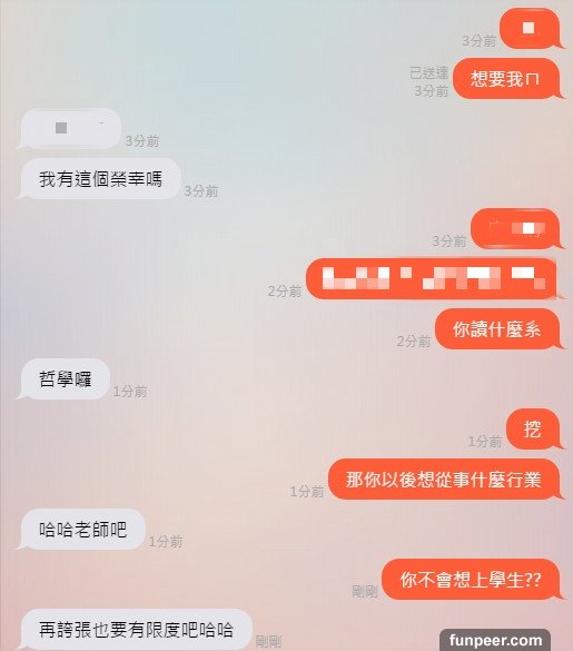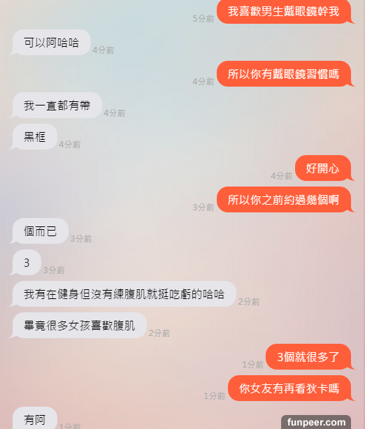 連穿什麼顏色衣服褲子都被我套話成功 我只能說男主角很單純 傻傻的還把賴給我 但基於個資我不公佈,我也不加