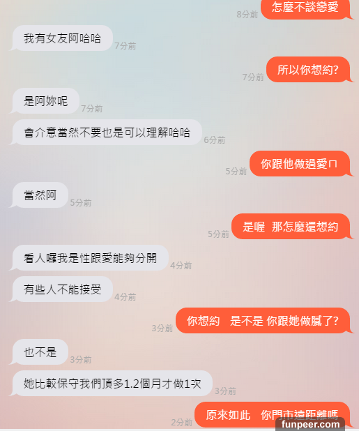 各位~看到重點嗎?就是他有女友還約炮喔 他想約炮理由也告訴我啦