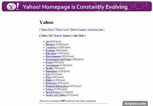 早期的雅虎頁面隨後,雅虎逐步擴張,建立了集搜索引擎、電子郵箱、即時通訊、網頁廣告和網站建站平台於一體的生態系統,覆蓋人們生活的方方面面,成為了世界上最大的互聯網門戶網站。