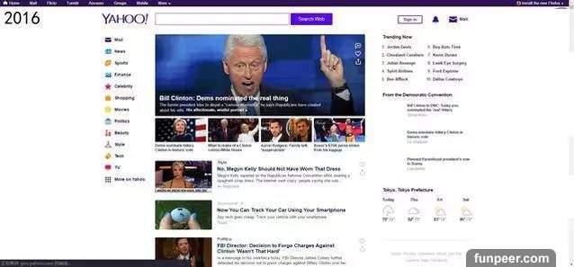 2016年的雅虎頁面1999年,互聯網剛剛起步階段,雅虎就擁有了1.2億獨立用戶,其中1億用戶至少在雅虎的某一個頻道或特色服務中註冊過。以電子郵箱為例,雅虎郵箱曾在全球範圍內擁有2.43億用戶,[email protected]��虎郵箱。
