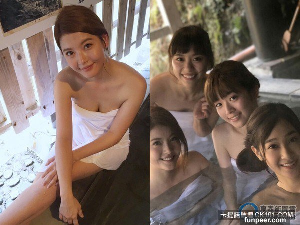 ▲陳怡溱(左起)、邱子芯、王樂妍、陳芊羽一起體驗冬天泡湯