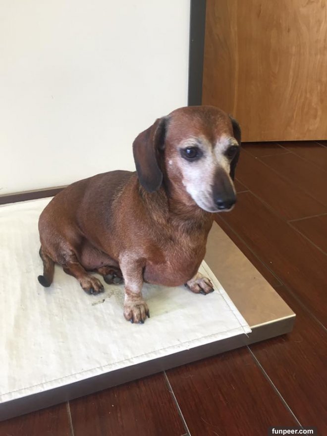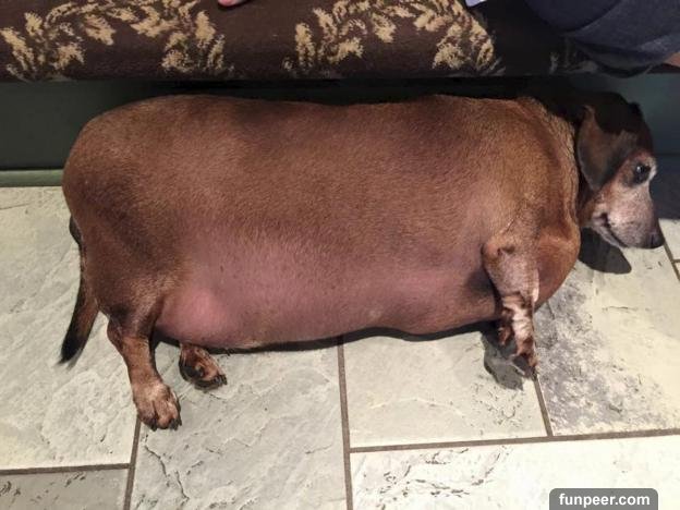 肥胖不僅僅是人類面臨的大難題,現在很多動物也進入了發福的行列。7歲的文森(Vincent)是一隻可愛的臘腸犬,去年7月牠憑藉自己圓滾滾的身材在網路迅速走紅。當時牠的體重達到了17公斤,體型更是一般臘腸犬的兩倍大,一度成為熱門話題。▼這就是文森。臘腸犬是一種腿短、身長的狗狗,牠因為長得太胖,顯得腿更細更短。