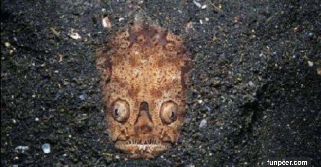 回到旅店,男子緊張地告訴老闆事發經過,結果老闆冷靜地說:「這是一種叫做瞻星魚的魚類,在當地的海灘上比較常見,常年是生活在海底的,但是又一些到了捕食的時候就會在潮水還沒退去的時候,隱藏在沙灘之中,張開嘴巴,潮水退去後,就是鬼臉。」