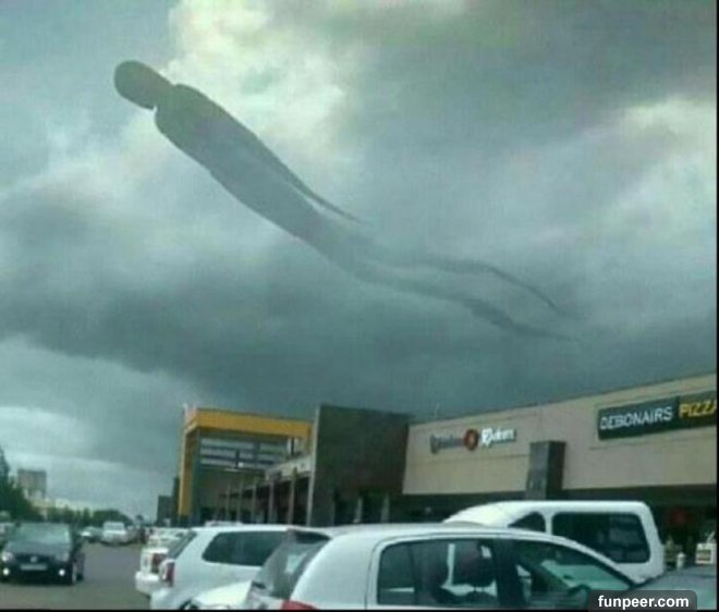 近日又有人拍到了一張無法理解的靈異照片,據說這是在非洲尚比亞的一個賣場門口拍到的,天空上這個巨大人形物體,體型真是龐大到讓人驚恐!推估約有100公尺長。