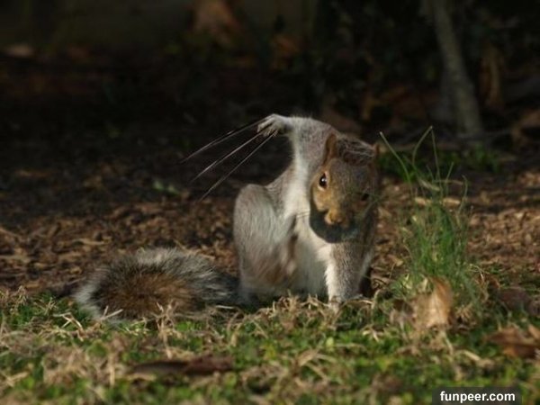 根據外媒boredpanda的報導,這隻可愛的鬆鼠在跳下樹的時候,剛好被攝影師捕捉到畫面,牠的動作超級帥氣,看起來好像雷神索爾之類的人物,也因為真的太可愛,這張圖被傳到網路上後,一場修圖大戰就開始啦! 這隻小鬆鼠的姿勢真的超帥氣的!