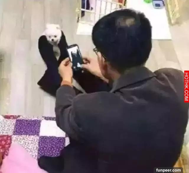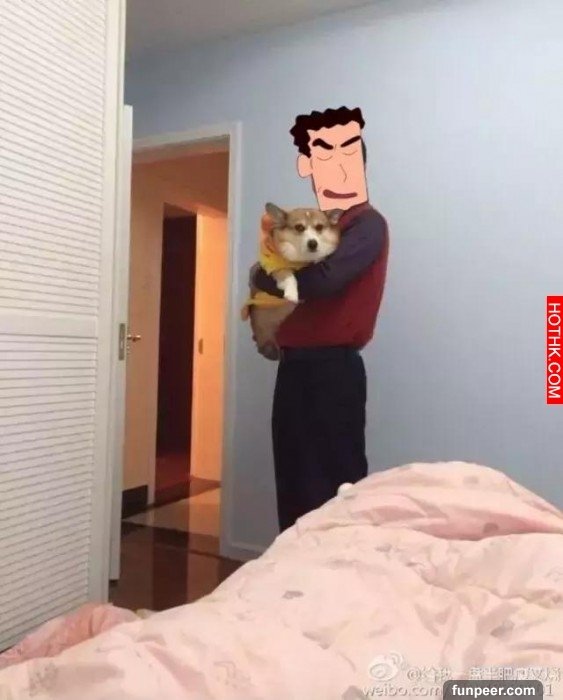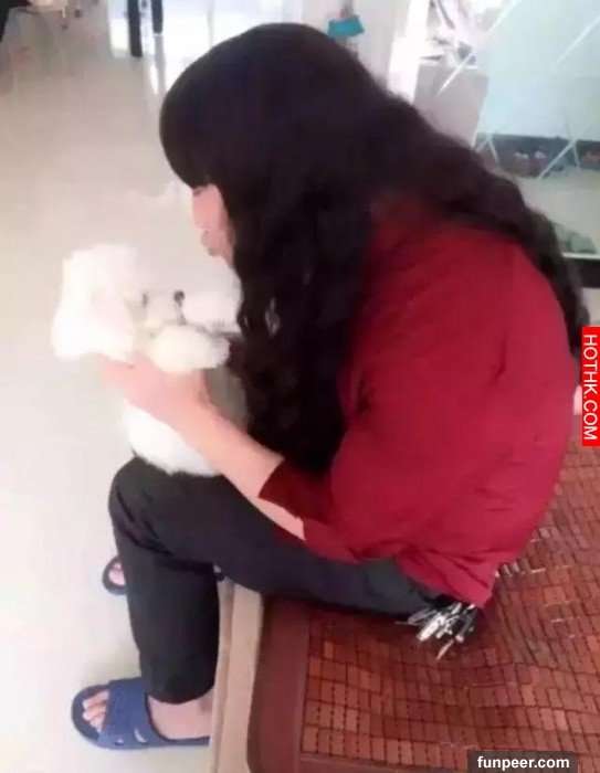 ▼搞不懂我爸了,五十歲的人了,戴著我妹的假髮逗狗玩......