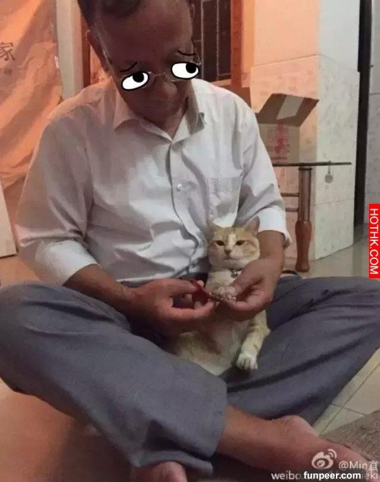 ▼小時候一邊看球一邊餵我,總是把飯塞到我鼻子裡的糙漢子,如今給貓溫柔地剪指甲,爸啊,我才是你親生的啊?!