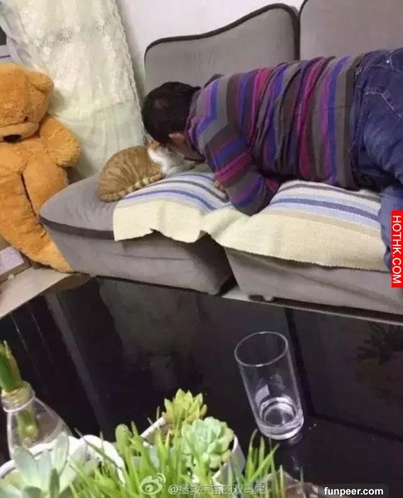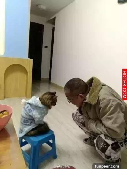 ▼之前說帶寵物回家就從樓上扔下去,現在我爸每天給貓梳毛鏟屎開心地不要不要的