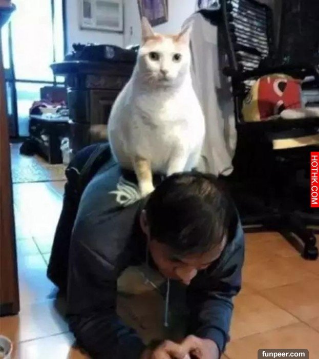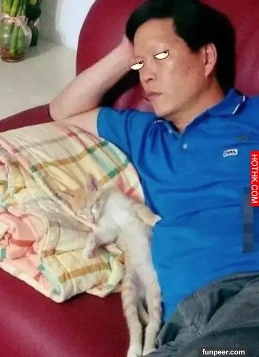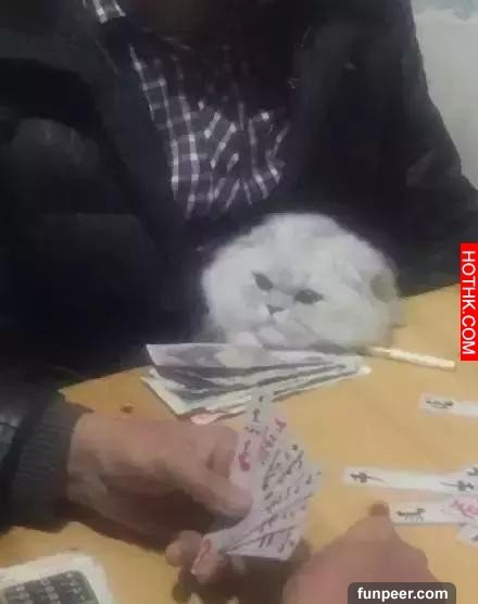 ▼我爸說怕貓自己在家無聊,就帶它去打牌了。