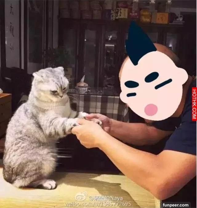 ▼我爸說帶貓回家就扔掉,現在天天給貓做大保健,這是在教它打電話。我說要把貓接走,我爸說你敢!
