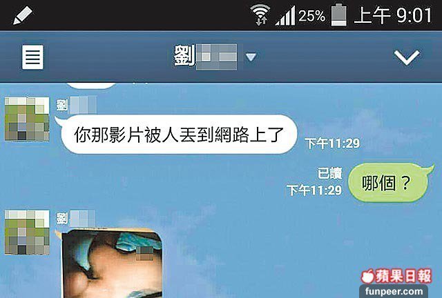 ▲上月「小辣」突然接到多名朋友傳LINE簡訊,稱在網路上看到她的性愛影片,她嚇到崩潰。(圖片翻攝蘋果日報)