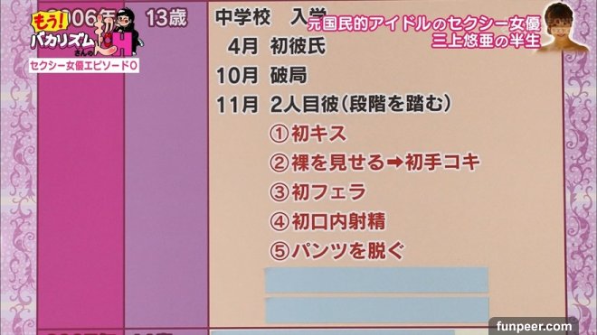 日本人氣女優三上悠亞最近接受電視節目訪問,大爆自已的性經驗。