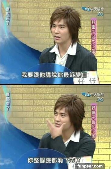 周渝民很可愛,就直接說:討她歡心啊,就直接跟她講說你變白了啊!