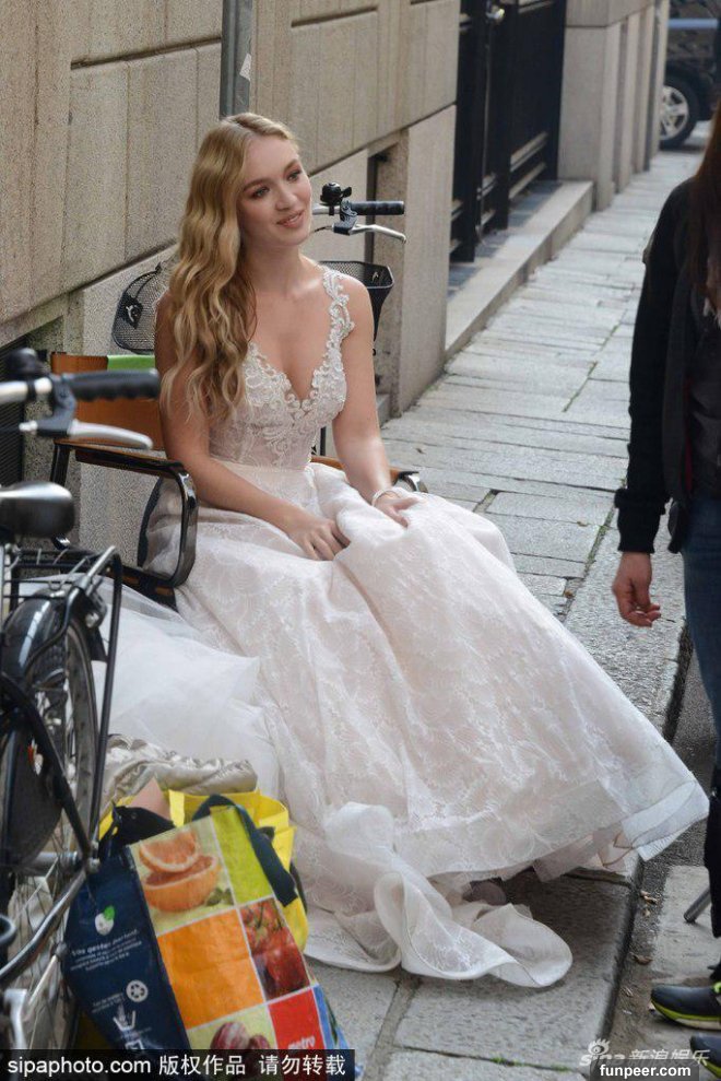 「小李子」李奧納多緋聞嫩模女友Roxy Horner現身街頭拍攝寫真,穿白色婚紗露酥胸,美度超吸睛!!