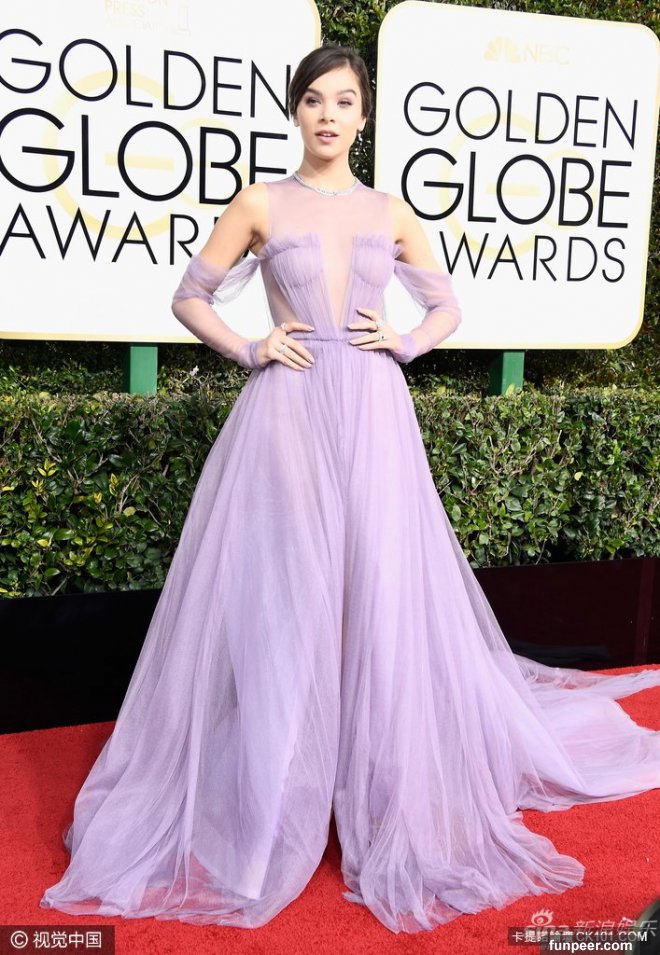 海莉·史坦菲德 紫色薄紗透視曳地禮服
