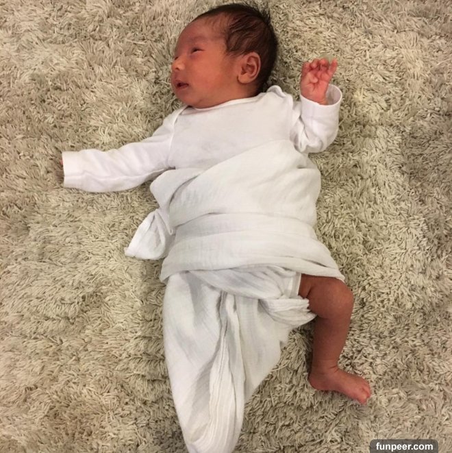 ▼洗完澡澡的寶寶一臉無辜,是誰給你設計了如此時尚的「單腿褲」。