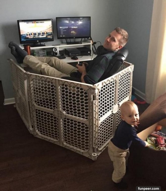 ▼保護寶貝就是給他足夠的空間,然後老爸就把自己「圍」起來,「你的地盤你做主」。