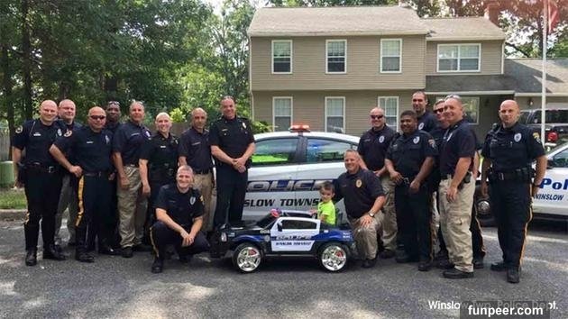 ▼警局裡所有警察都與小威廉合照,還讓他開迷你警車。