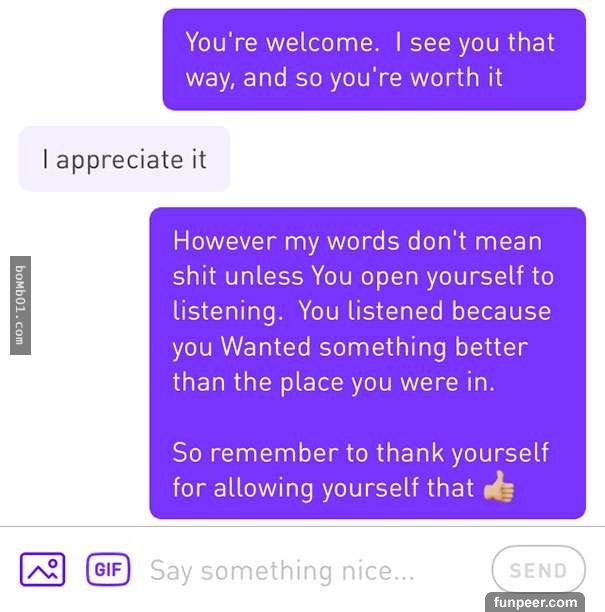 遇到糟糕的事後,我們總是會懷疑自己,甚至陷入自我唾棄的深淵無法自拔。這個女孩就是如此,幸好她遇到了這位網友,才看清了自己的本心。現在她應該不想要約火包了吧。
