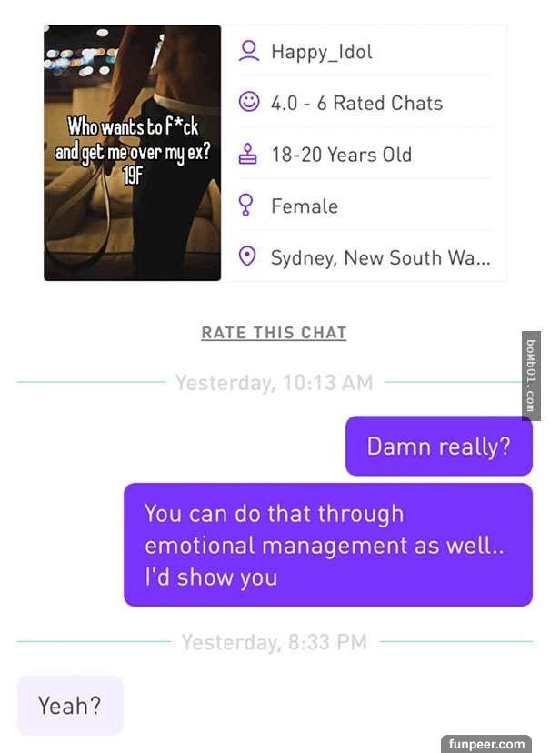 失戀後你會怎麼紓解負面情緒?每個人的應對方法都不一樣。下面這名澳洲雪梨19歲女孩就決定放飛自己,通過社交app找陌生人約火包。一位網友看到後跟她聊了幾句,這些話對每個痛苦的人來說都有很大的共鳴…