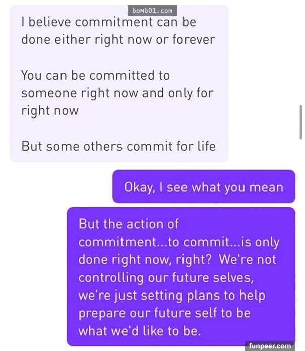 ▼女孩:我覺得既是現在的又是永遠的。有人只在當下許諾,也只許諾當下,有的人就會許下一生的諾言。網友:我明白你的意思,但許諾本身就是當下的做法,對吧?我們不能控制自己的未來啊,只能做計畫為想要的未來努力。女孩:比方說,我堅定跟我男朋友在一起了一年半,現在分手了,諾言這種事真是沒有準,來去如風。網友:那些許下終生諾言的人其實只在這一刻許諾,所以諾言這種東西,與其說是期望,不如說是計畫。我們制定計劃,然後執行,就是這樣。女孩:我想提個問題,這和我是不是敞開心扉,要不要約炮麻痹自己有啥關系?網友:我這不是正在引導你嘛。其實你想從戀愛中得到的東西與這都一樣,不管是性、愛、信任,還是幽默感,這些東西都會變。不過還是要活在當下,盡情體驗這些東西的美好。希望它們永遠不變就沒什麼意義啦。