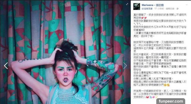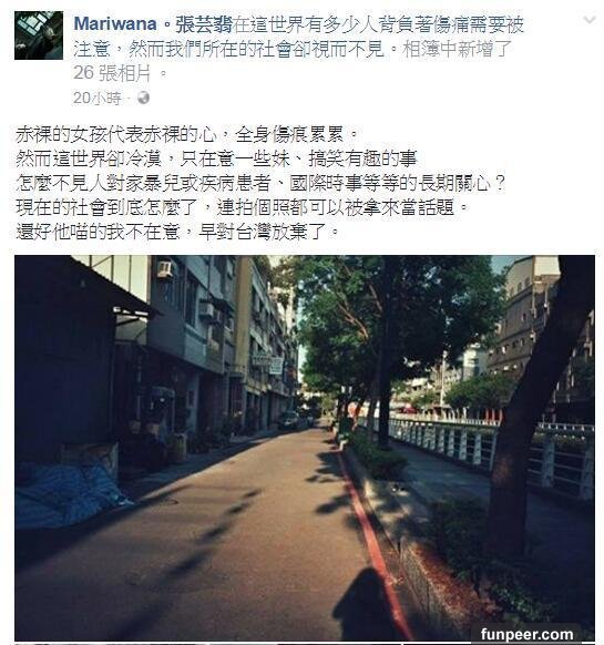 (從她的臉書可以看到她對這次行動的想法以及初衷。 #翻攝自Mariwana。張芸翡臉書)