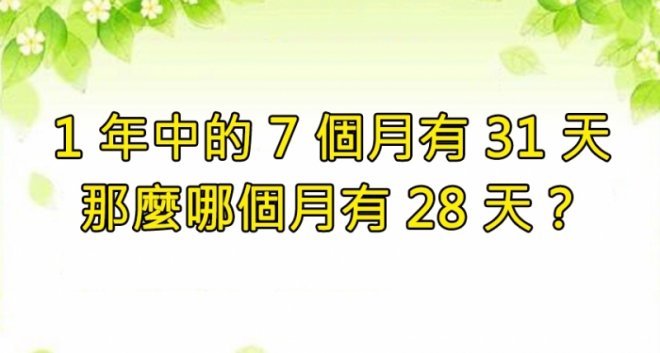 ▲答案不是2月喔!很多人可能不太擅長解腦筋急轉彎的題目,所以先跟大家介紹一種可以用來解題的思維模式,那就是「橫向思考」,也稱作「水平思考」或「非線性思維」,可以理解成觸類旁通的一種表現。這種思考方式主要用來針對水平定義問題,也就是說在問題解決前有其他更改方式或途徑,與垂直思考相對應。例如海龜湯系列就是著名的橫向思考遊戲。 (答案在最底下,不要偷看!) #1