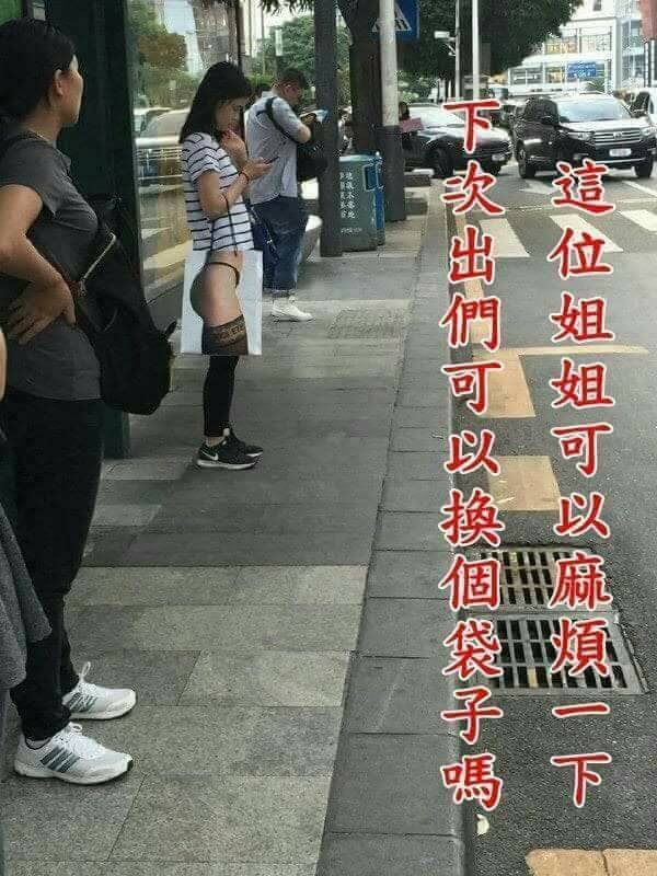 這位姊姊可以麻煩一下 下次出門可以換個袋子嗎?