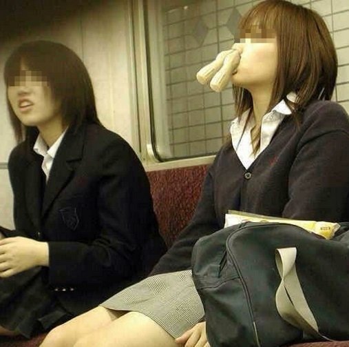 明明就是花樣年華的女高中生為什麼要在電車上把鼻孔塞成這樣啦www