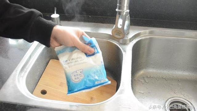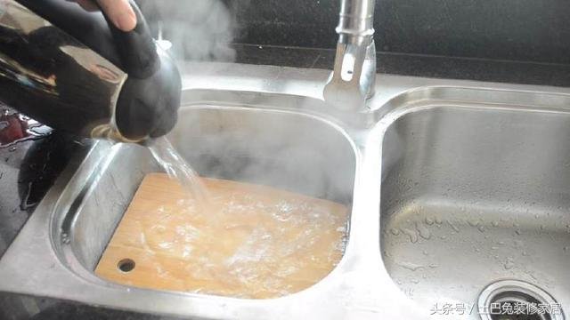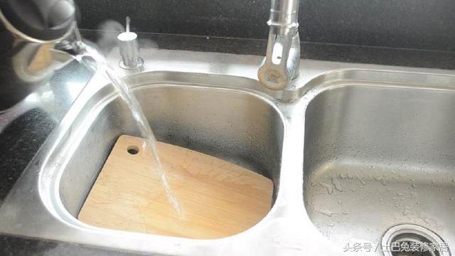 1、把新買的菜板放盆裡(或者洗碗槽內),
