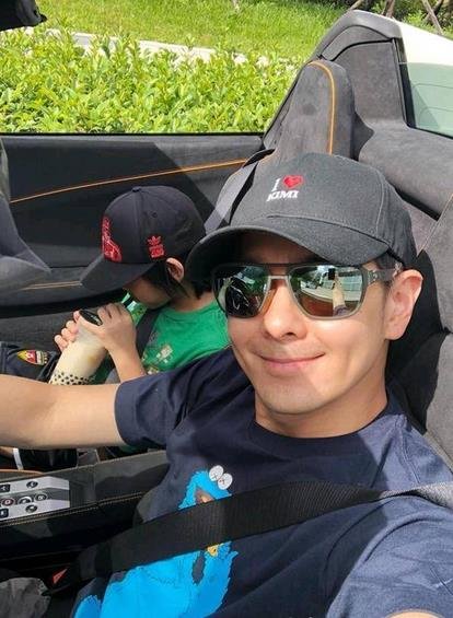 大兒子Kimi則坐在副駕駛座,認真地吸著珍奶,父子倆乘百萬超跑開心出門。