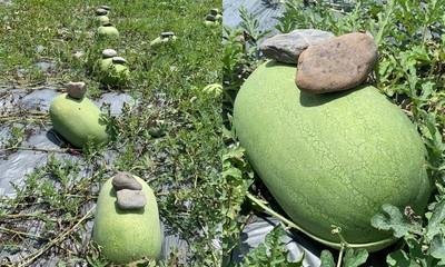 西瓜上面為什麼要「壓石頭」?怕西瓜跑了嗎? 瓜農揭曉答案....網驚:長知識了!
