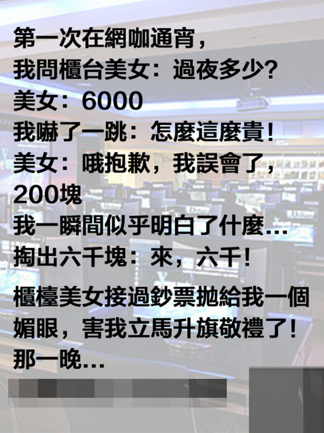 網咖櫃檯的美女跟我說「過夜六千」,結果我度過了最「銷魂」的一晚...