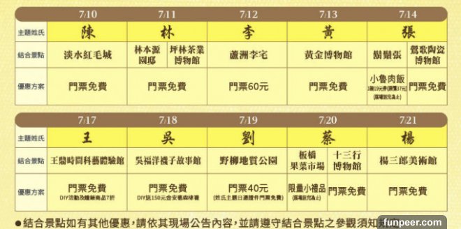 暑假到了,很多旅遊景點都推出相關優惠活動,像是新北市就很有創意結合百家姓,推出「10大姓氏免費玩景點免門票」的活動,讓許多遊客趨之若鶩!