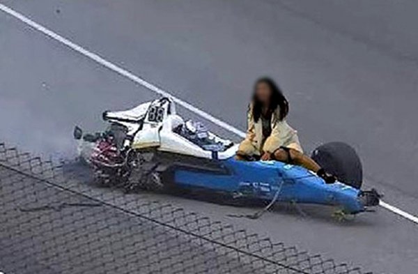 女子的坐引擎蓋姿勢被網友惡搞。翻攝自網路