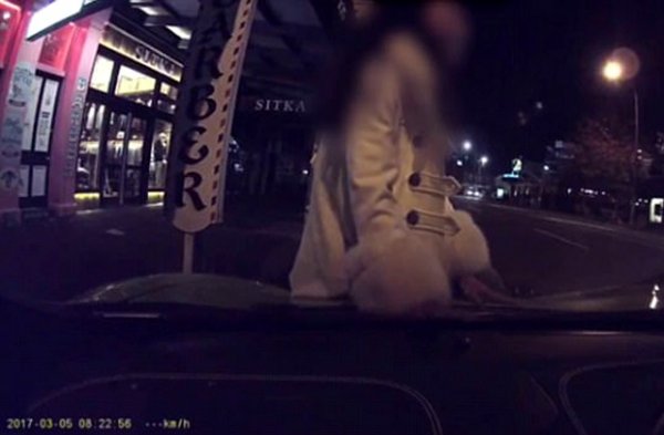 紐西蘭奧克蘭一名華裔女子,日前看到路邊的超跑就心癢難耐,一把爬上超跑引擎蓋拍照,