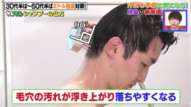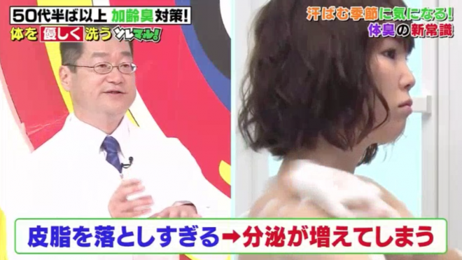 加齡臭對策:正確清潔身體避免皮脂被清走太多皮脂被過度洗去的話,反而會使更多油脂分泌,因此溫柔地清洗肌膚很重要。可用肥皂制作柔軟的泡沫,用手塗抹以清洗較好。另多吃含抗酸化的黑加侖子可以減低皮脂酸化。